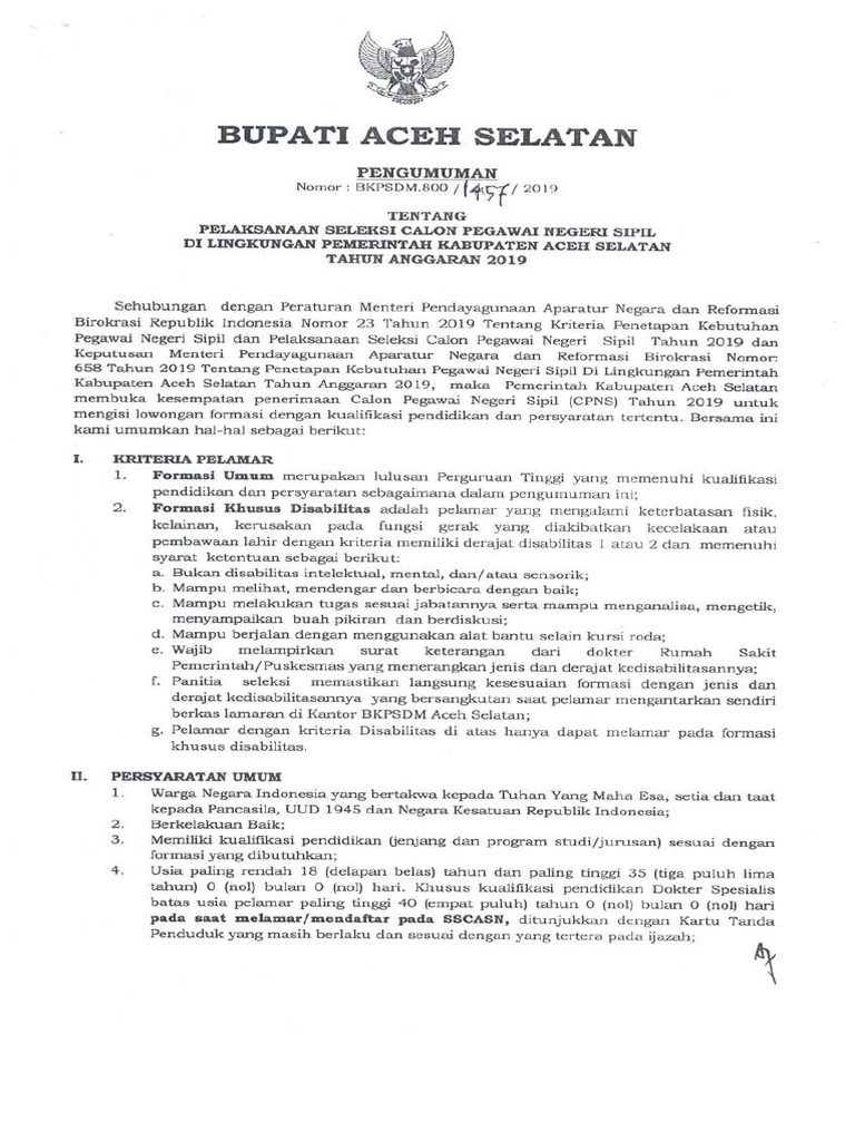 Pemerintah Kabupaten Aceh Barat Berita Pengumuman Tentang Pendaftaran Ulang Seleksi Kompetensi Bidang Skb Seleksi Cpns Formasi Tahun 2019 Pemkab Aceh Barat